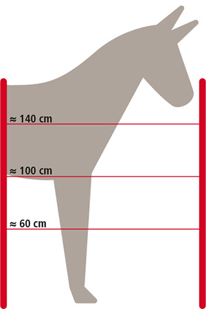 | Elektriskt staket för hopphästar | Elektriskt staket för stora hästar | Elektriskt staket för små hästar |